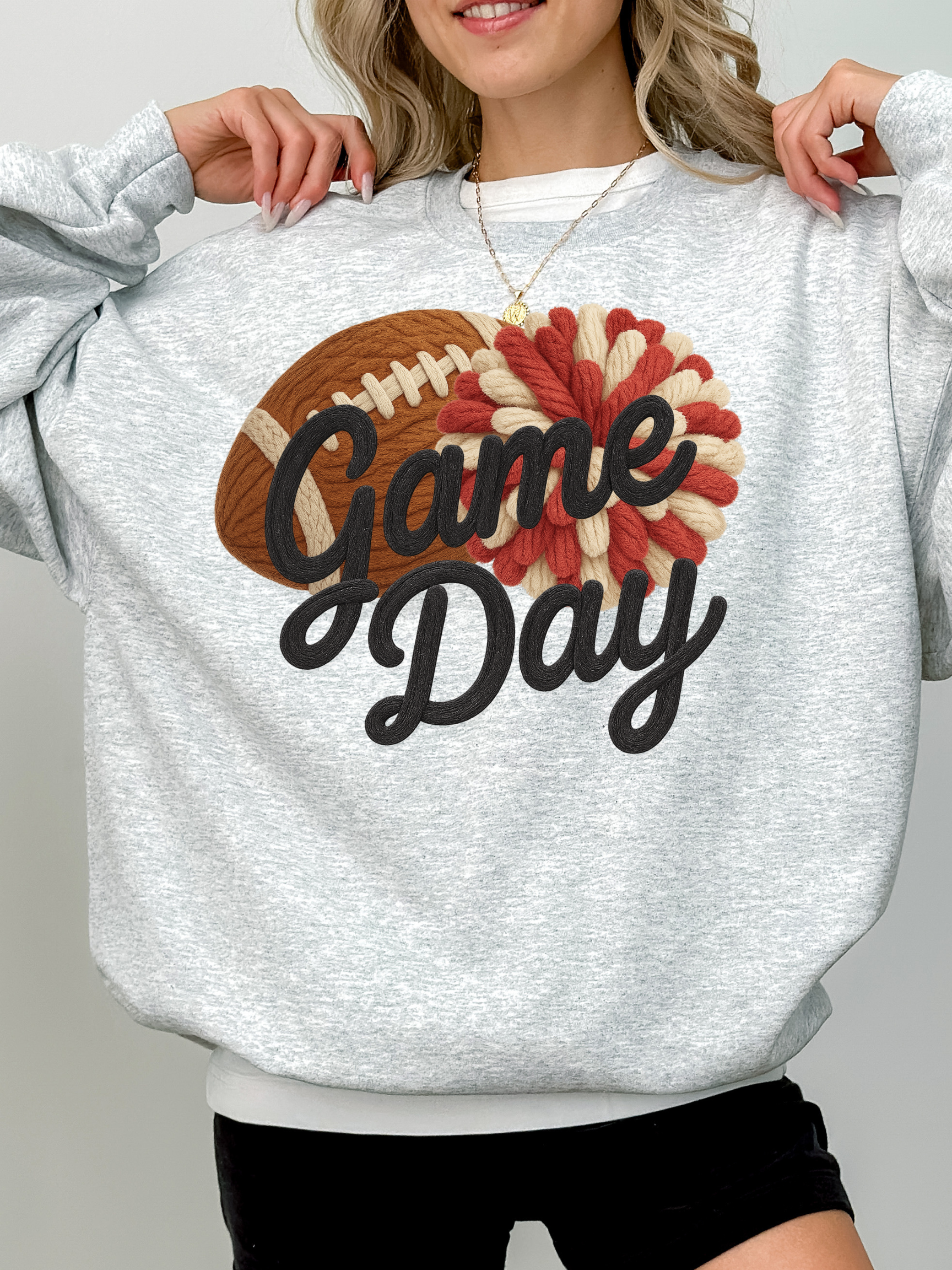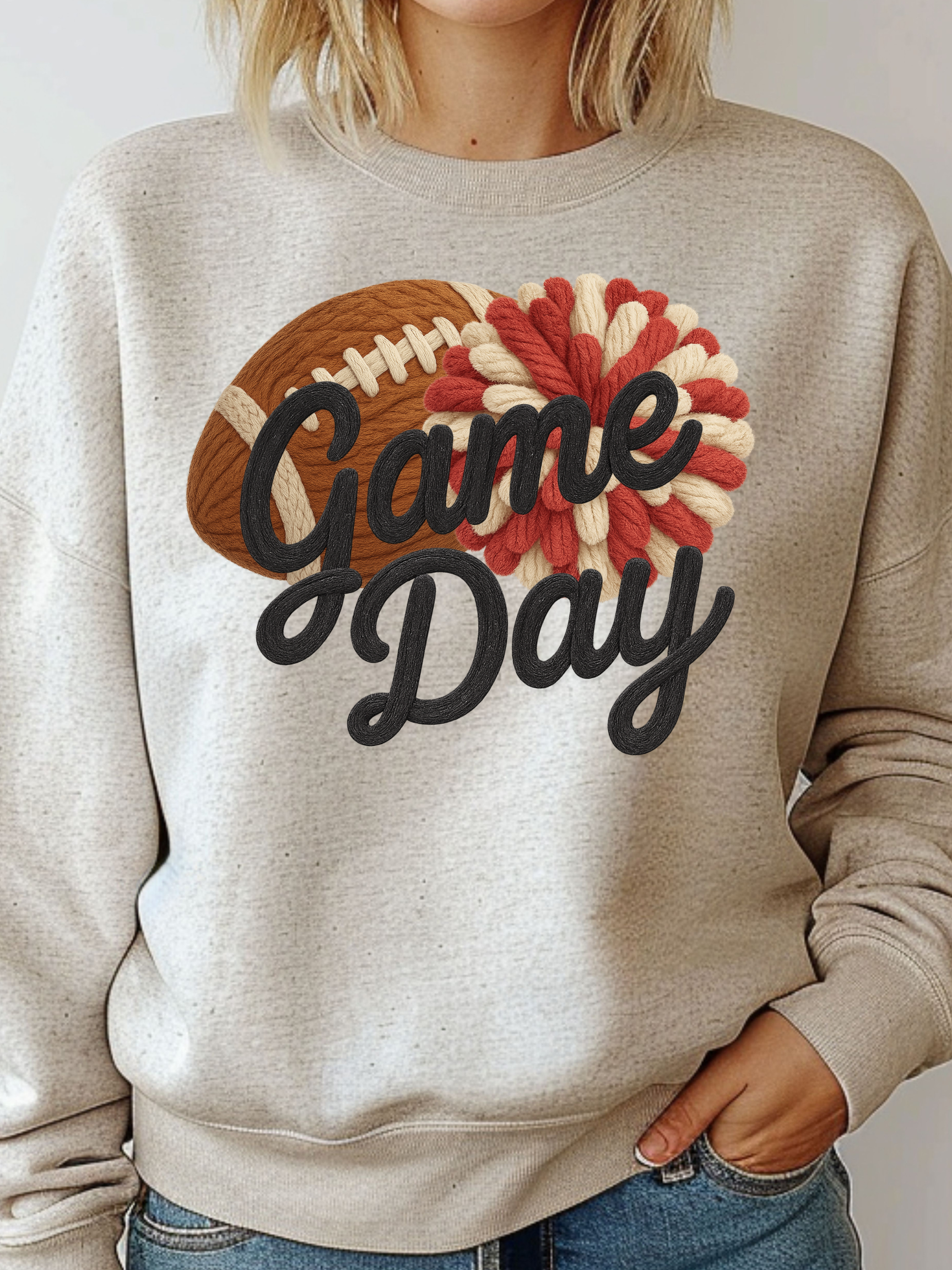 This Game Day design is adorable! This faux yarn design gives such a great vintage feel to your wardrobe! Available in a variety of colors and sizes.