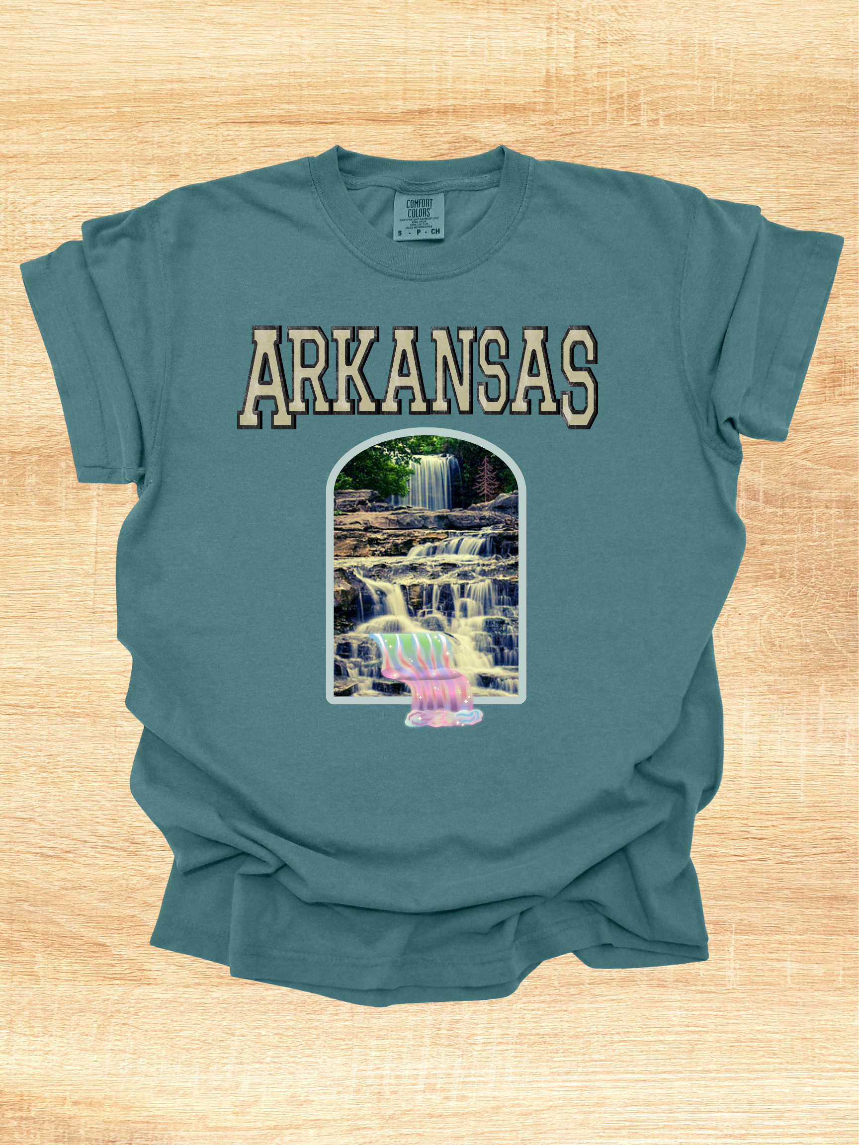 Sport your favorite state with this one-of-a-kind Arkansas waterfall design.